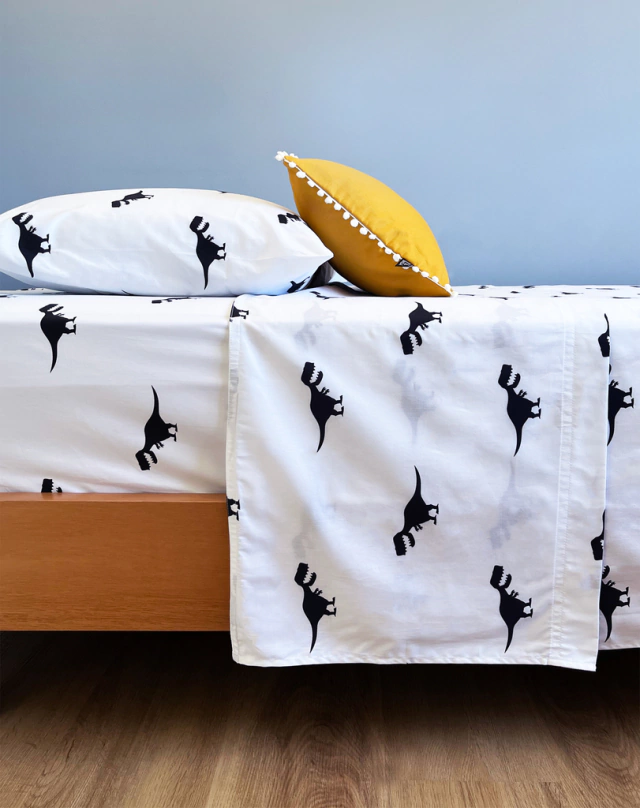 Lençol macio com toque acetinado, 200 fios e 100% algodão com estampa moderninha Mini.Moo.