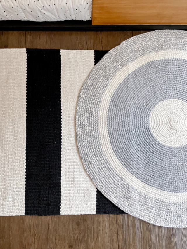 O tapete Redondo é 100% algodão e produzido a partir de um cuidadoso trabalho artesanal - isso significa que cada detalhe ganha um olhar especial e consequentemente, toda peça é única!